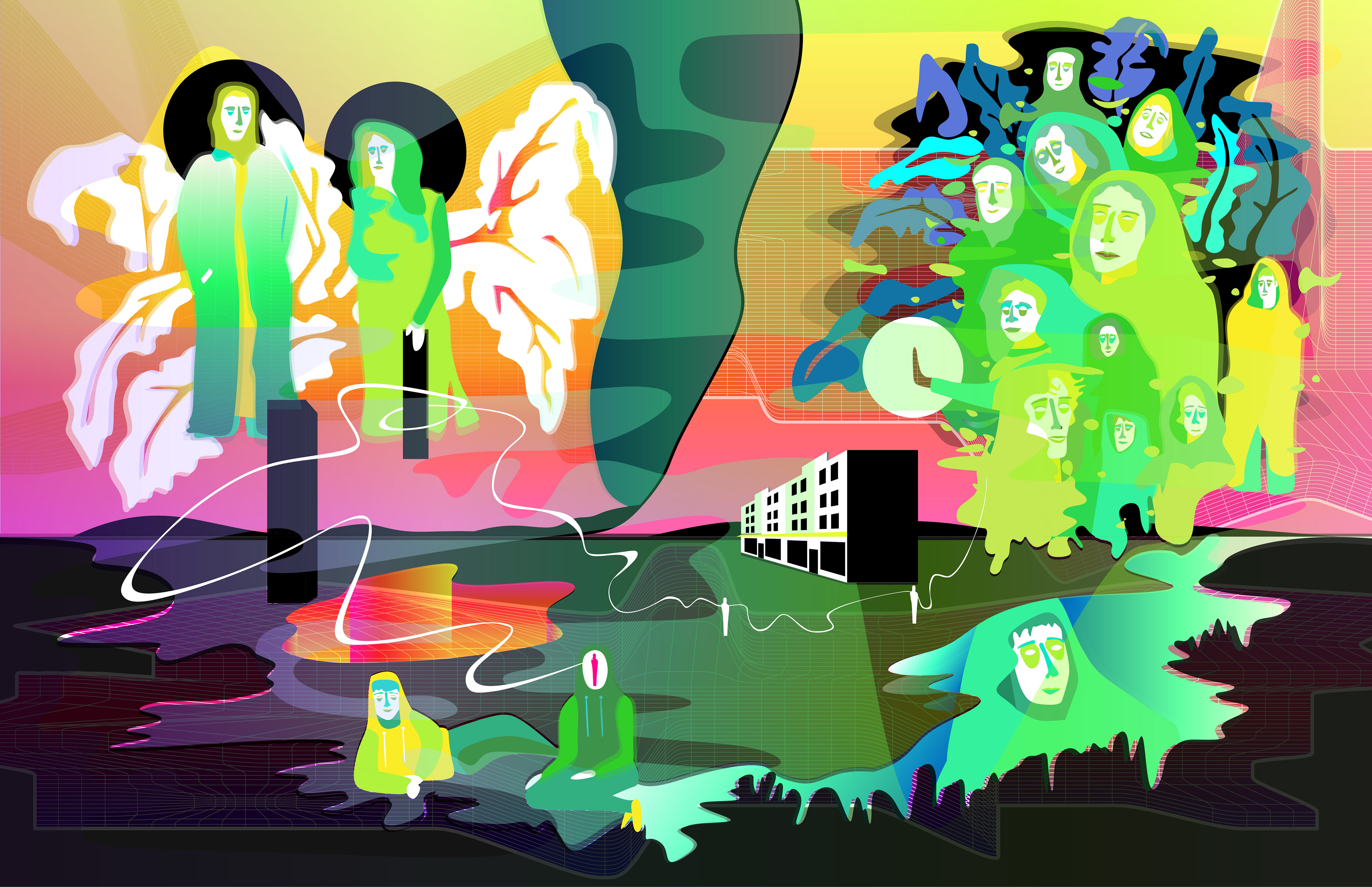 Illustrations for an original story which follows a man trapped in a horrific paradise of his minds own making.